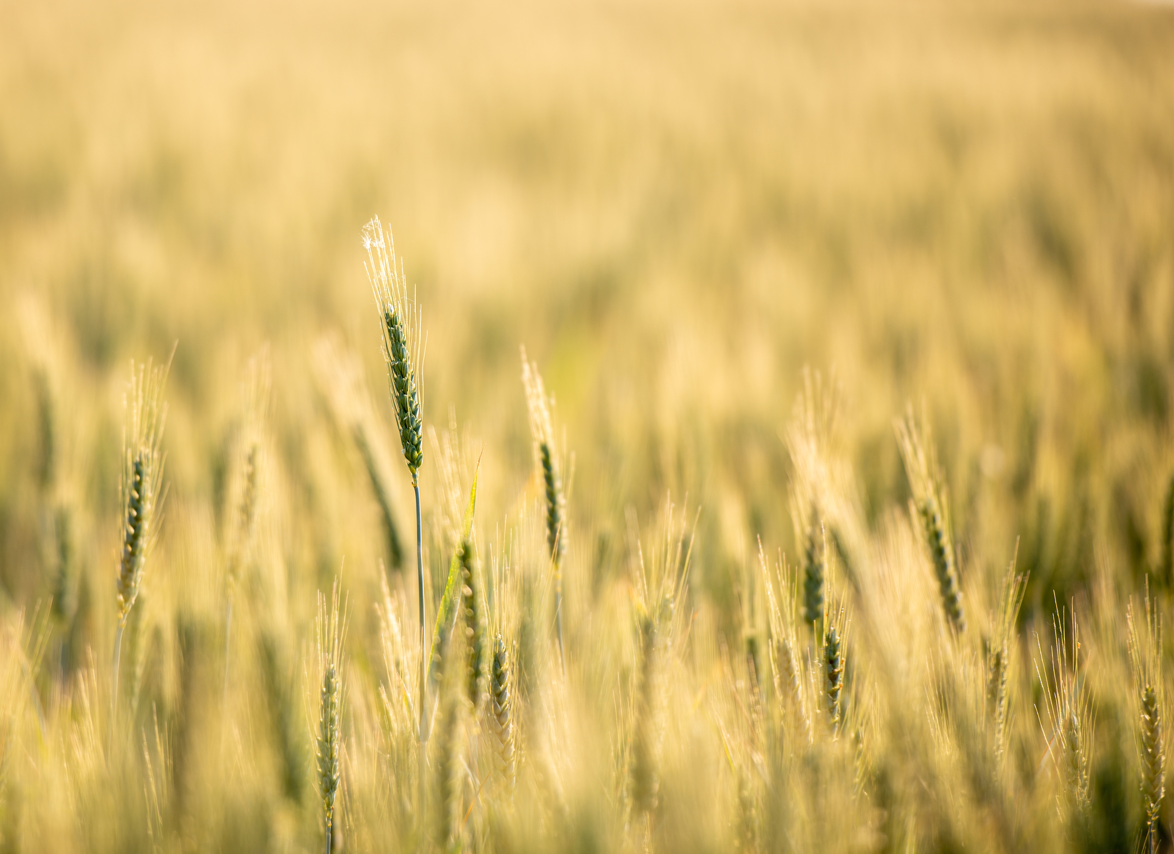 Roggenähren im Gegenlicht – eine hat einen längeren Halm und überragt die anderen Roggenähren9311